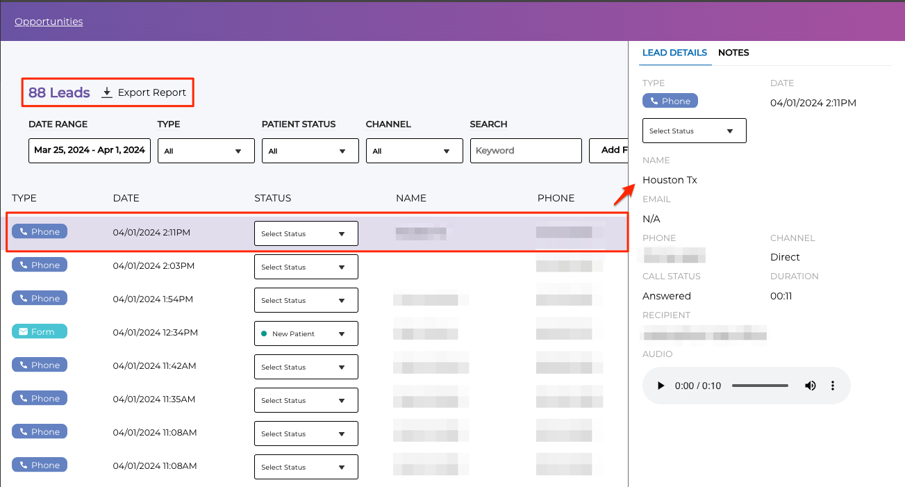 * Spam reporting (this allows users to mark phone leads as spam if deemed to be not a legitimate inquiry for the practice - spam phone leads will not be tracked in conversion reports and metrics)